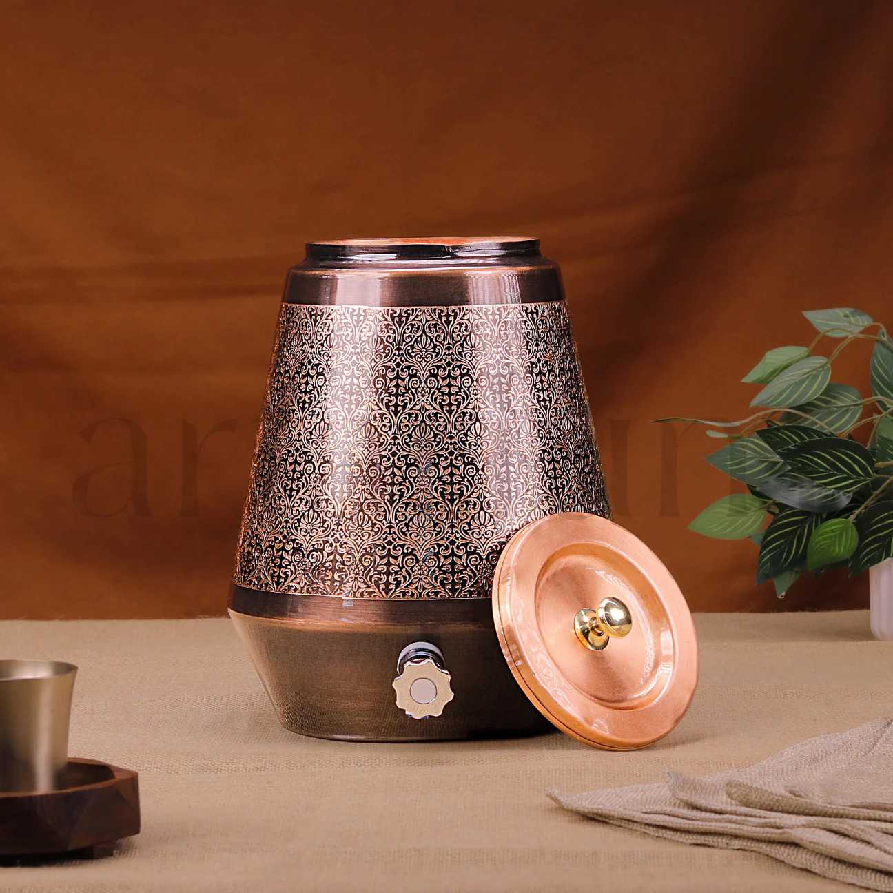 The Artarium’s kitchen accessories collection features handcrafted brass and copper items, blending traditional Indian craftsmanship with functionality. Products include dinner sets, ladles, tumblers, and water dispensers, emphasizing durability and timeless elegance.